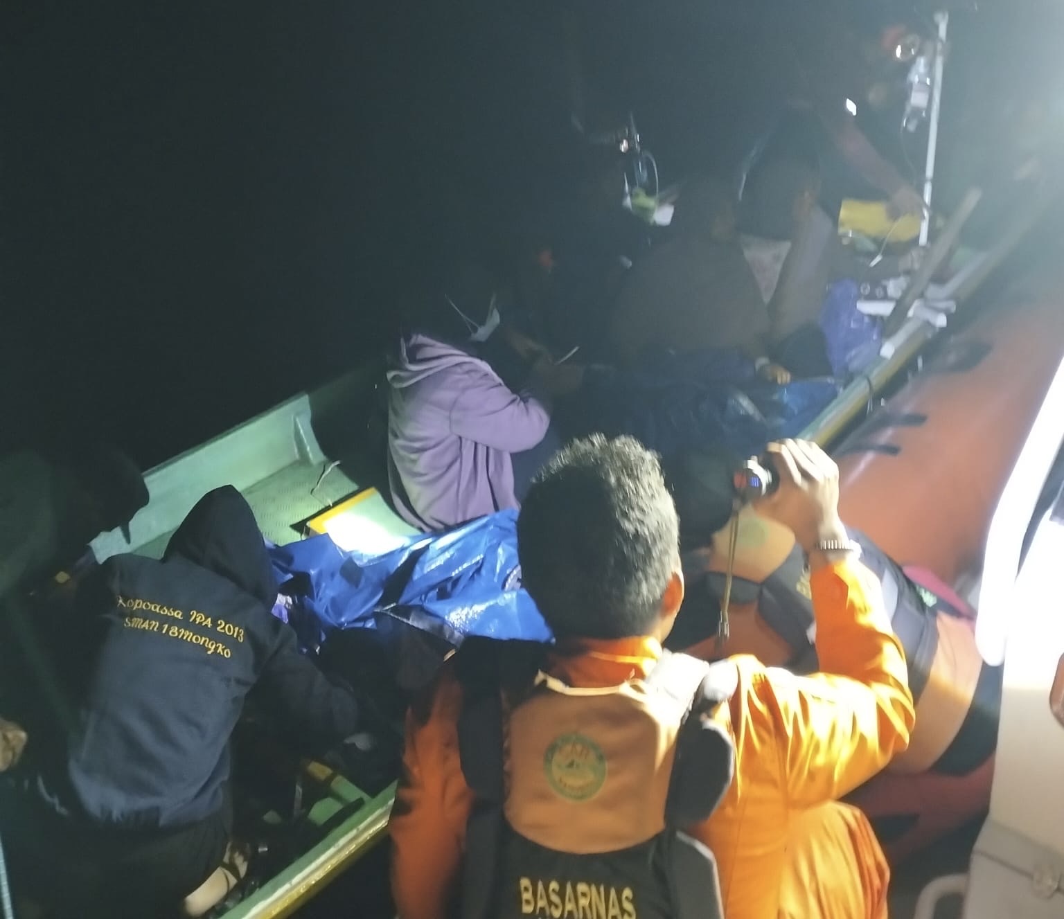 Tim SAR tiba di lokasi sekitar pukul 05.05 WITA dan berhasil mengevakuasi 14 penumpang ke sebuah RIB (Rigid Inflatable Boat).