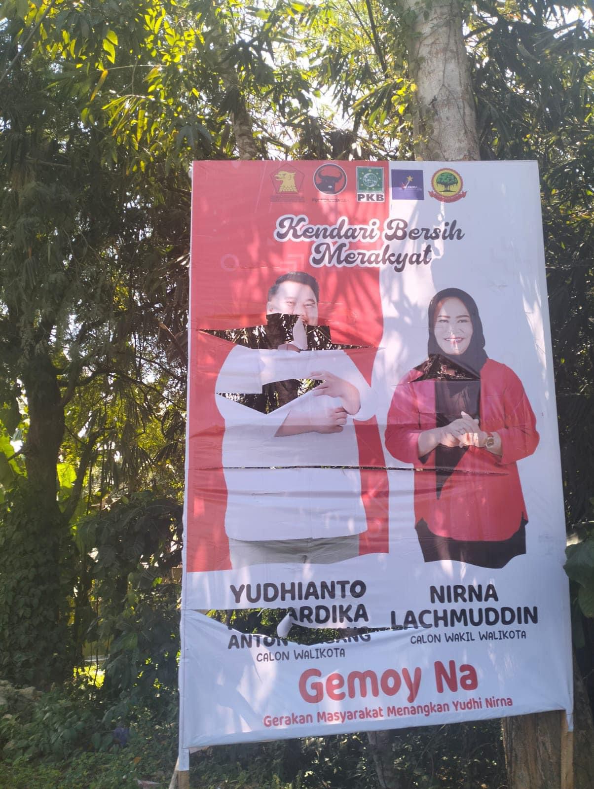 LENSATIMOR.COM, KENDARI – Aksi perusakan baliho dan banner pasangan calon Walikota dan Wakil Walikota Kendari, Yudhianto Mahardika Anton Timbang dan Hj. Nirna Lachmuddin terjadi di sejumlah titik di beberapa jalan utama Kota Kendari pada malam hari 16 September 2024.