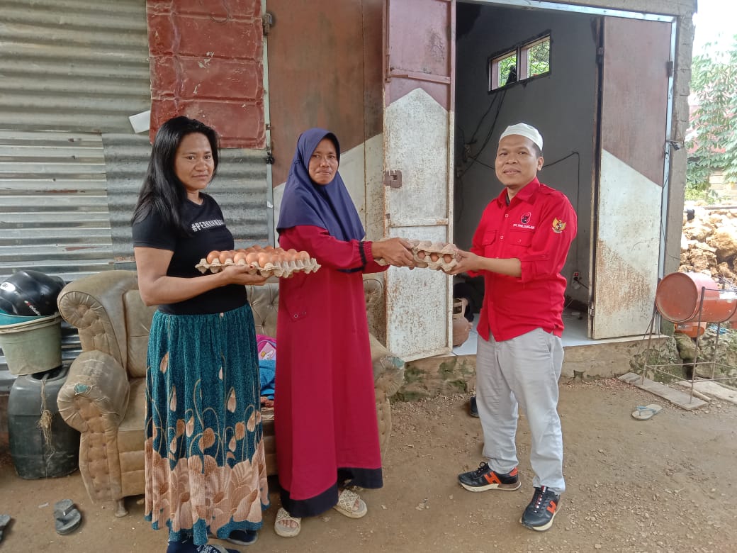 Saharuddin mengungkapkan bahwa kali ini pihaknya membagikan ratusan rak telur ayam ras kepada masyarakat sebagai bentuk responsif Baguna DPD PDIP Sultra terhadap warga terdampak banjir.