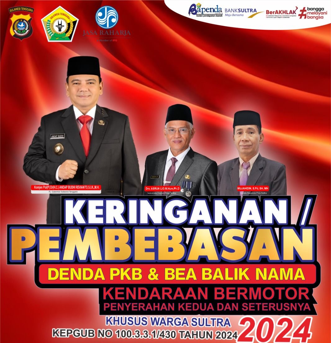 Keringanan ini berdasarkan Keputusan Gubernur Sulawesi Tenggara Nomor : 100.3.3.1/430 Tahun 2024, sebagai bentuk perhatian terhadap peningkatan Pendapatan Asli Daerah (PAD).