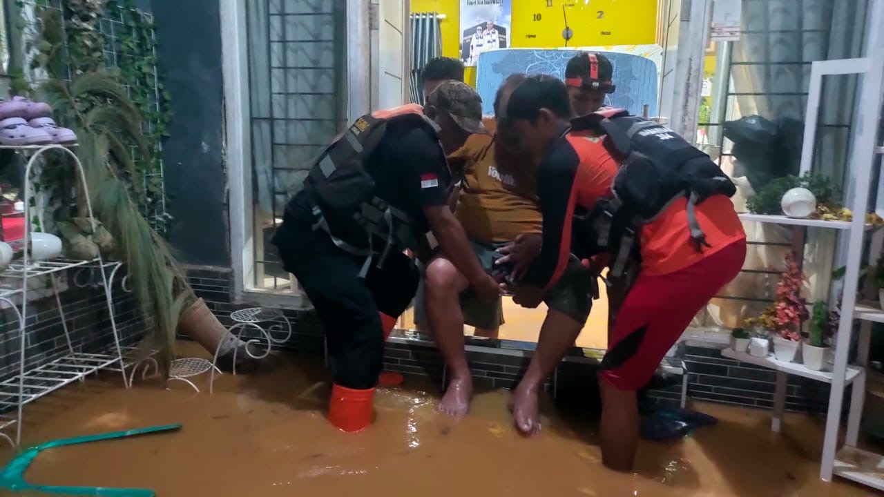 “Hujan lebat disertai kilat dan petir yang terjadi sore tadi membuat genangan air meluap di beberapa lokasi,” ujar Komandan Matin.