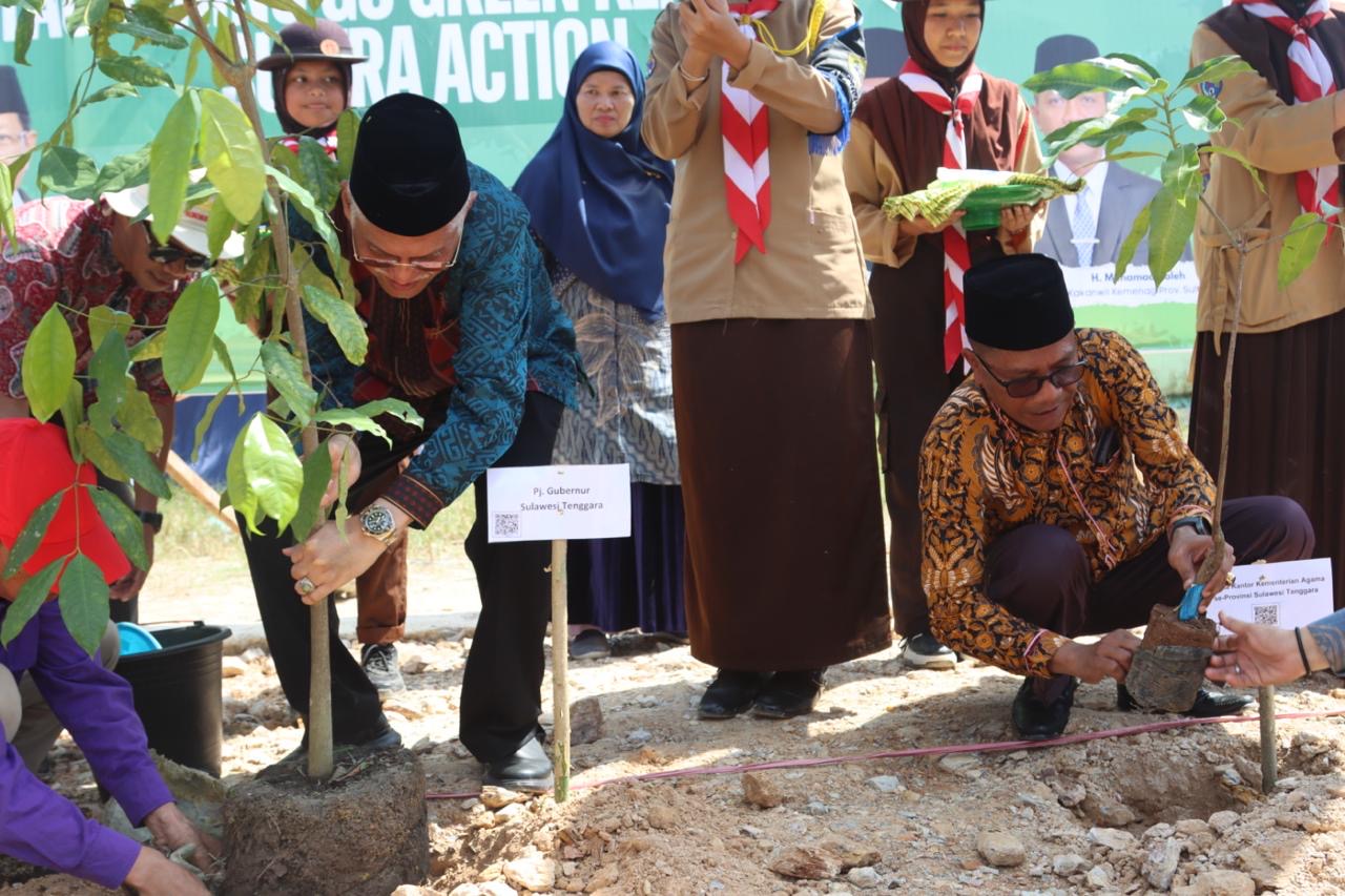 Penanaman pohon juga dilakukan secara serentak di Kemenag Kabupaten/Kota, Madrasah, dan KUA se-Provinsi Sultra, dengan total 22.463 pohon.