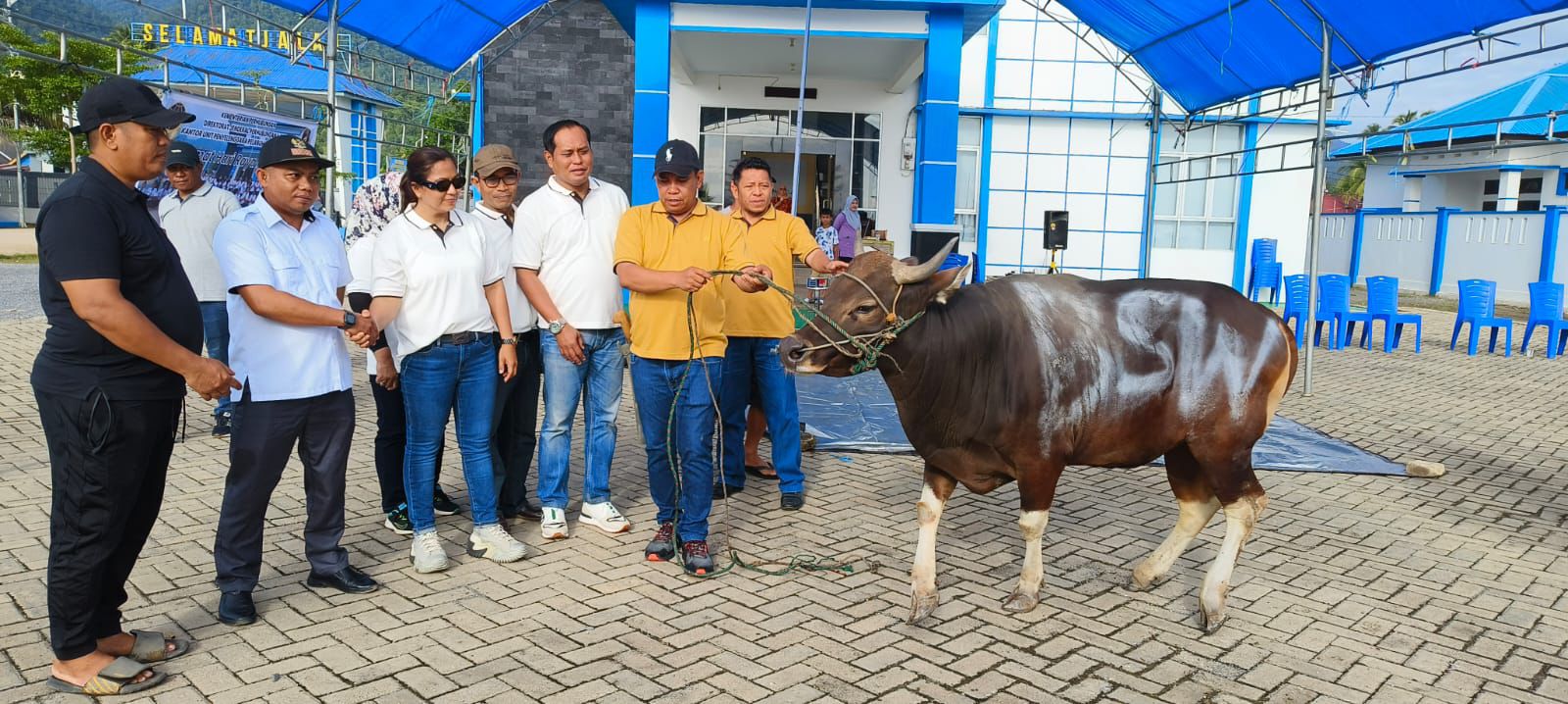 Dia menerangkan, sapi yang dikurbankan, dan dibagikan ke masyarakat serta staf dan PPNPN KUPP Molawe, berasal dari sumbangan atau bantuan yang diberikan oleh mitra kerja KUPP Molawe.