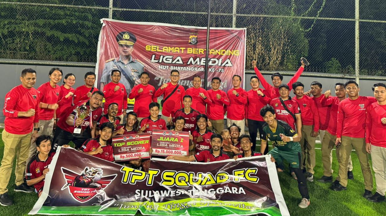 LENSATIMOR.COM, KENDARI – TPT Squad menjadi tim yang berhasil menjuarai Liga Media Mini Soccer Cup I yang diselenggarakan Kepolisian Daerah (Polda) Sulawesi Tenggara (Sultra) di Kota Kendari.