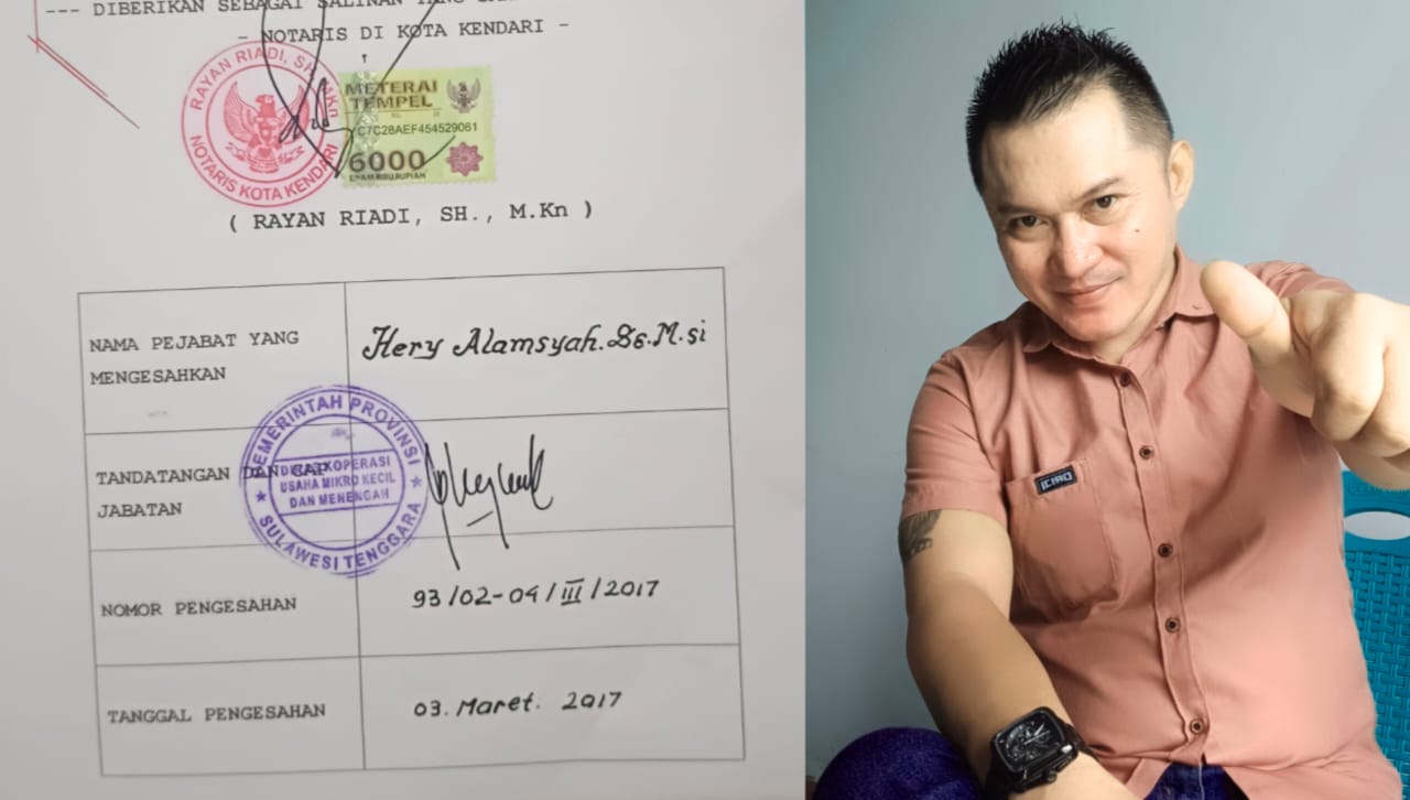 Akta pendiriannya dibuat oleh RAYAN RIADI, S.H., M.Kn., seorang Notaris/PPAT resmi di Kota Kendari, yang ditetapkan berdasarkan: