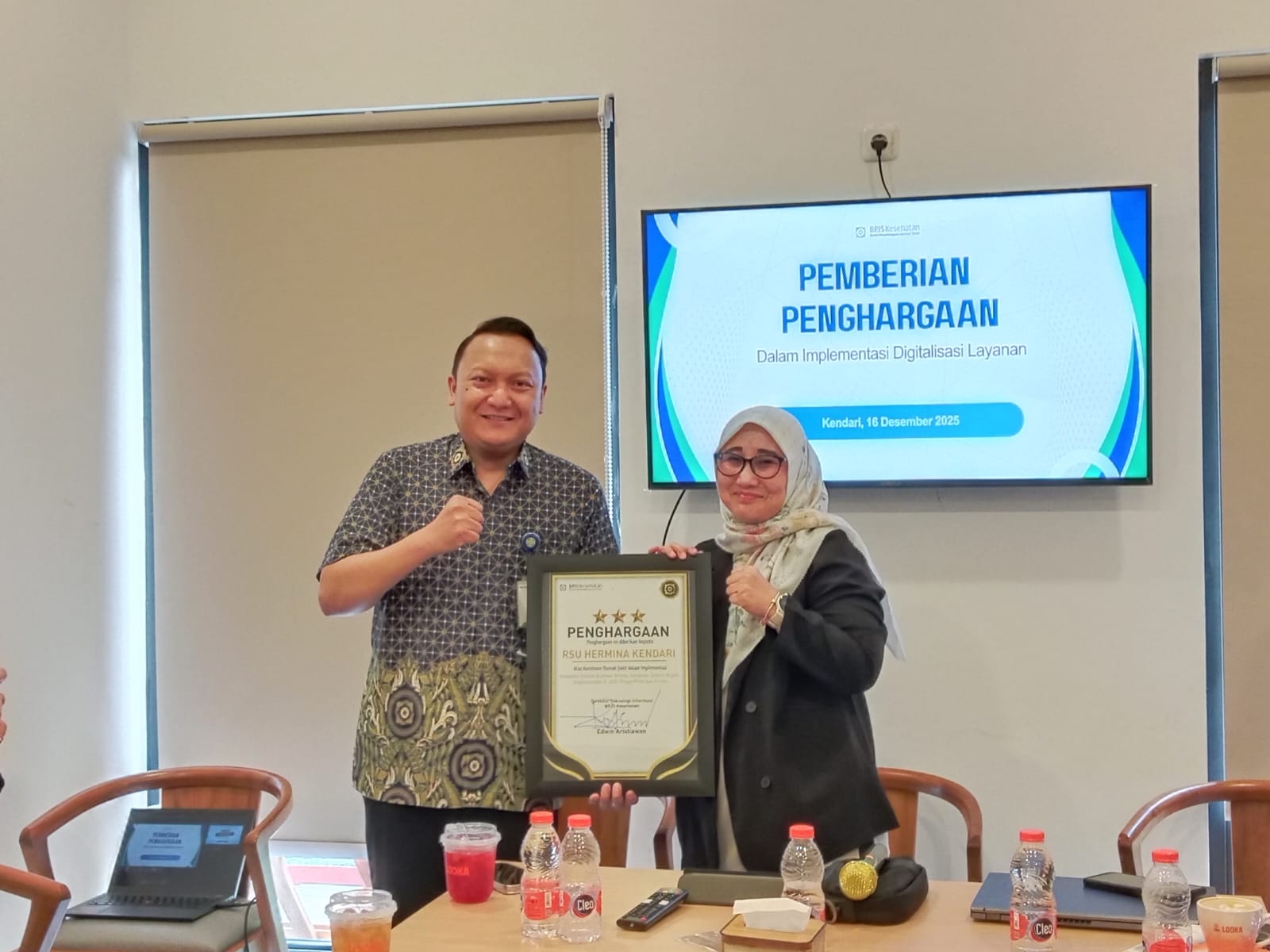 Penghargaan ini diberikan secara resmi oleh Kepala BPJS h Kesehatan Cabang Kendari, Apt. Rinaldi Wibisono, S.Farm, kepada Direktur RSU Hermina Kendari, dr. Yulita Basir, MARS, pada Selasa (16/12/2025).